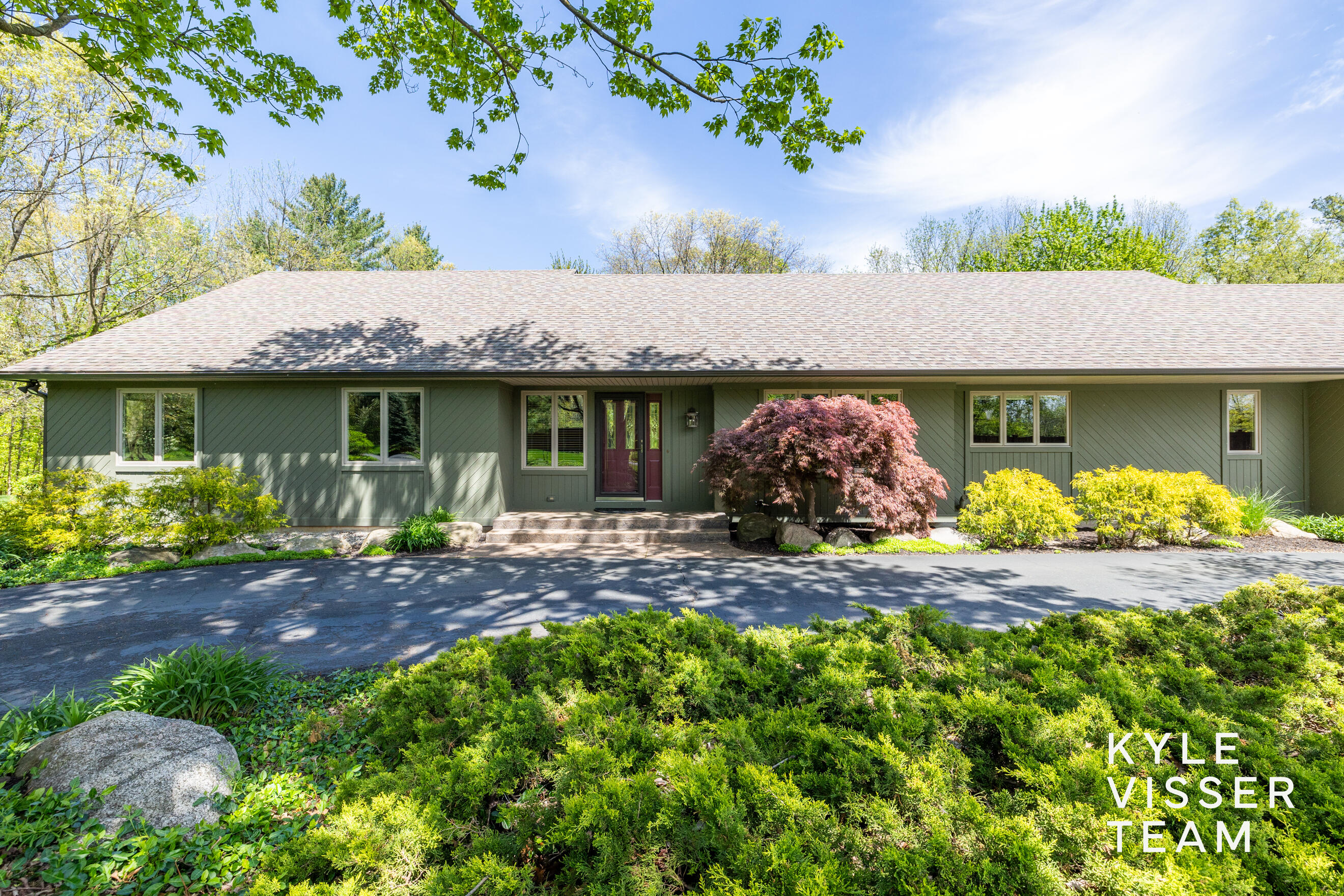 Nestled off a scenic natural beauty road in the highly sought-after Forest Hills school district sits this beautiful home remodeled by Colonial Builders. This sprawling executive ranch is meticulously maintained and offers breathtaking panoramic views of its lush five-acre property. Step inside to discover a large living room anchored by a stunning stone fireplace, a spacious kitchen with a center island, high-end appliances, custom cabinetry, and both a formal dining room and a cozy eating area off the kitchen. The main level features three generous bedrooms, including a primary suite with a beautiful ensuite bathroom and sliders leading to a private deck. A second full bath, half bath, laundry room, and mudroom complete this level, ensuring convenience and comfort. The walk-out lower level boasts a welcoming family room, two additional bedrooms, and a third full bathroom, offering plenty of space for family and guests. Outside, this home is a lush paradise. Two expansive decks, a charming paver block patio, gorgeous gardens, and a serene fountain create a picturesque setting for relaxation and gatherings. Enjoy the 1,200 sq ft heated and insulated pole barn, perfect for all your outdoor essentials and hobbies. Additional features include an invisible fence, a whimsical tree house, a whole home generator and attached garage with epoxy floors, storage cabinets and wash tub. Conveniently located minutes from downtown Ada and a quick commute to Medical Mile.